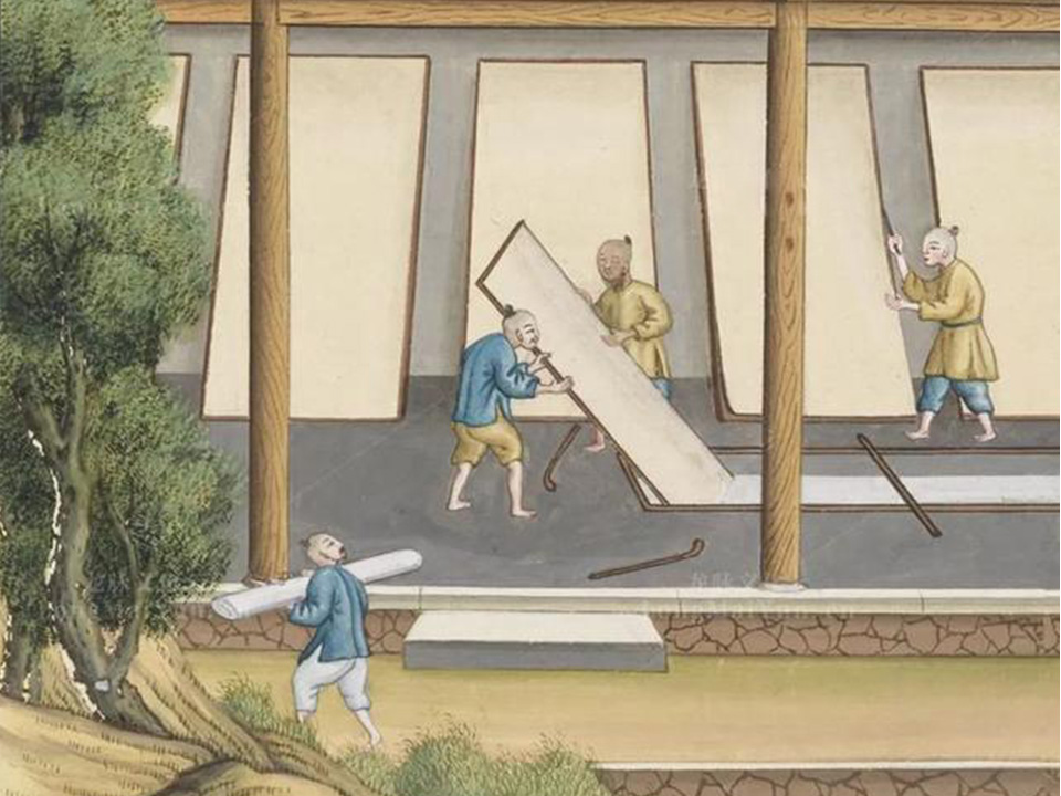手工造纸每日每个工匠平均只能做300到500张纸。